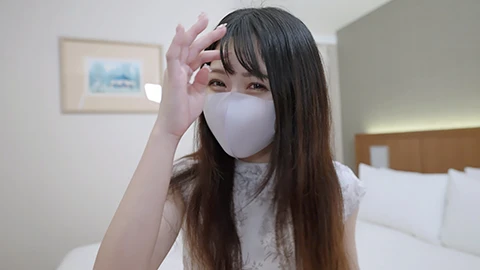 シーンが変わってホテルへ。いきなりベットの上にワンピースの希愛ちゃんが。マスクを外して顔出し状態で座っています。